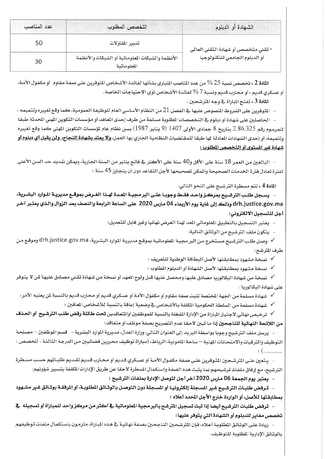 وزارة العدل تعلن عن مباريات توظيف 460 منصب آخر أجل 06 مارس 2020