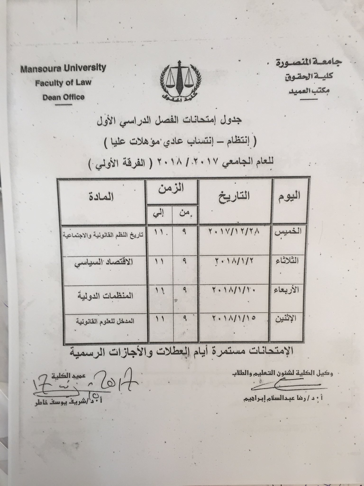 المكتب الثقافي مصر Na Twitteru جدول امتحانات كلية الحقوق جامعة المنصورة للفصل الدراسي الاول للعام 2018 2017 مرحلة جامعية