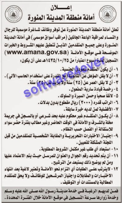 وظائف وفرص عمل شاغرة فى المملكة العربية السعودية وظائف جريدة المدينة 21 8 2014 وظائف السعودية اليوم وظائف السعودية وظائف جريدة المدينة اليوم وظائف 25 شوال 1435 وظائف شاغرة