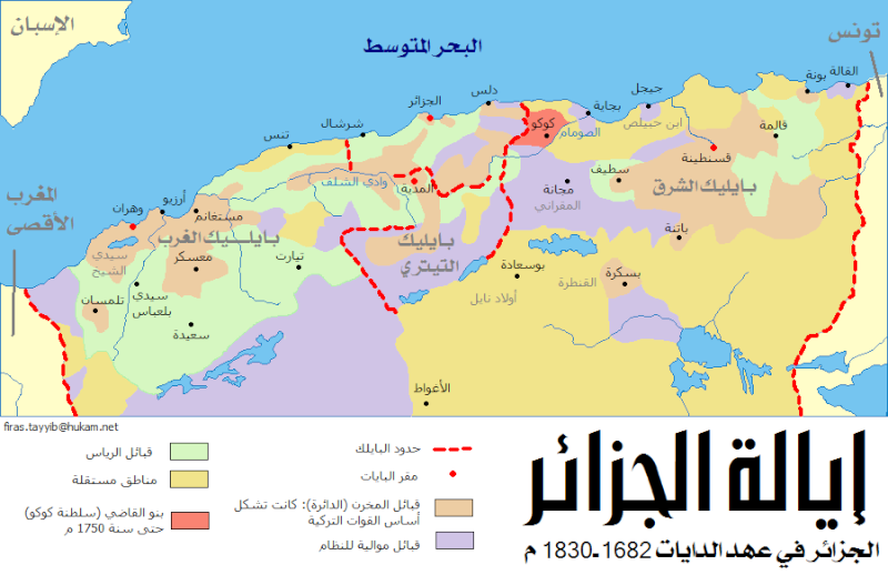 خريطة إيالة الجزائر في عهد الدايات 1682 1830