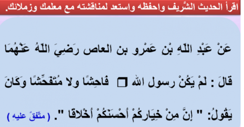 حل درس حسن الخلق للصف العاشر خبر جديد