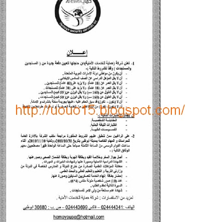 شركه حمايه للخدمات الامنيه وظائف شاغرة فى الامارات