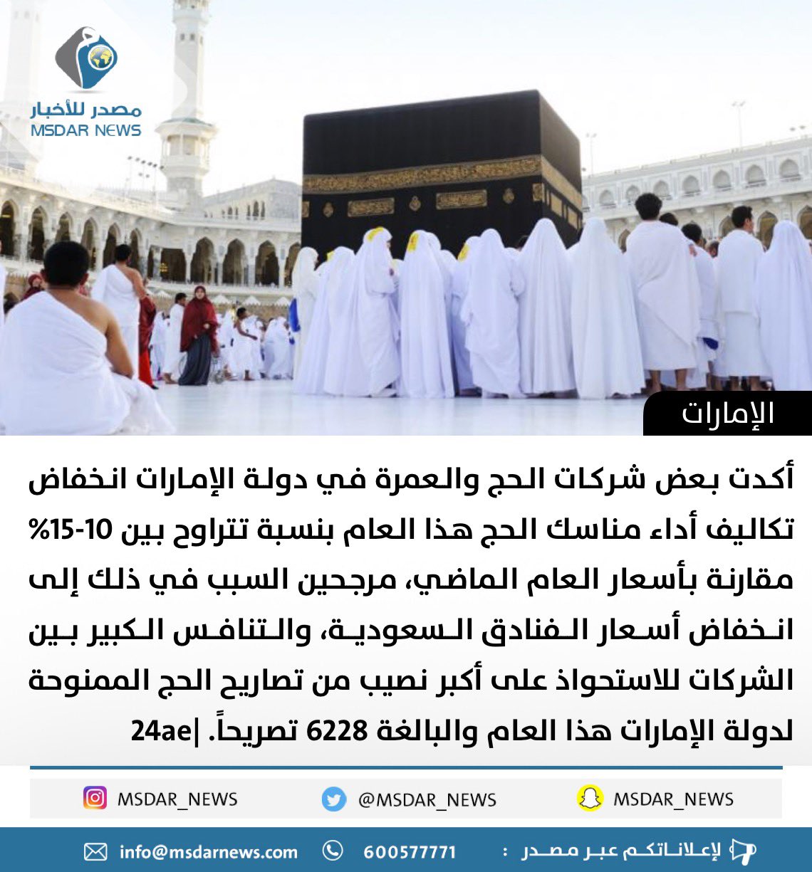 مصدر On Twitter انخفاض أسعار حملات الحج في الإمارات بنسبة تراوحت بين 10 إلى 15 مصدر للأخبار