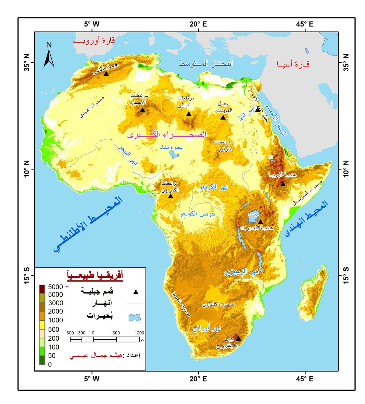 الجغرافيا ببساطة خريطة افريقييا طبيعية خريطة تضاريس قارة افريقيا انهار افريقيا جبال وهضاب افريقيا
