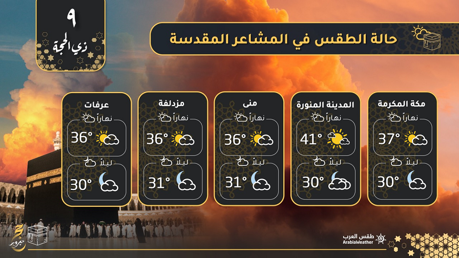 طقس العرب السعودية يوم عرفه توقعات الطقس ليوم الخميس 9 ذي الحجة في المشاعر الم قدسة الطقس