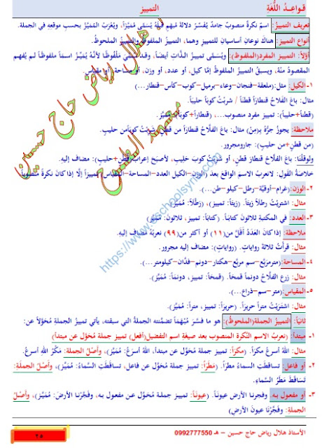 حل درس التمييز في اللغة العربية للصف التاسع الفصل الاول